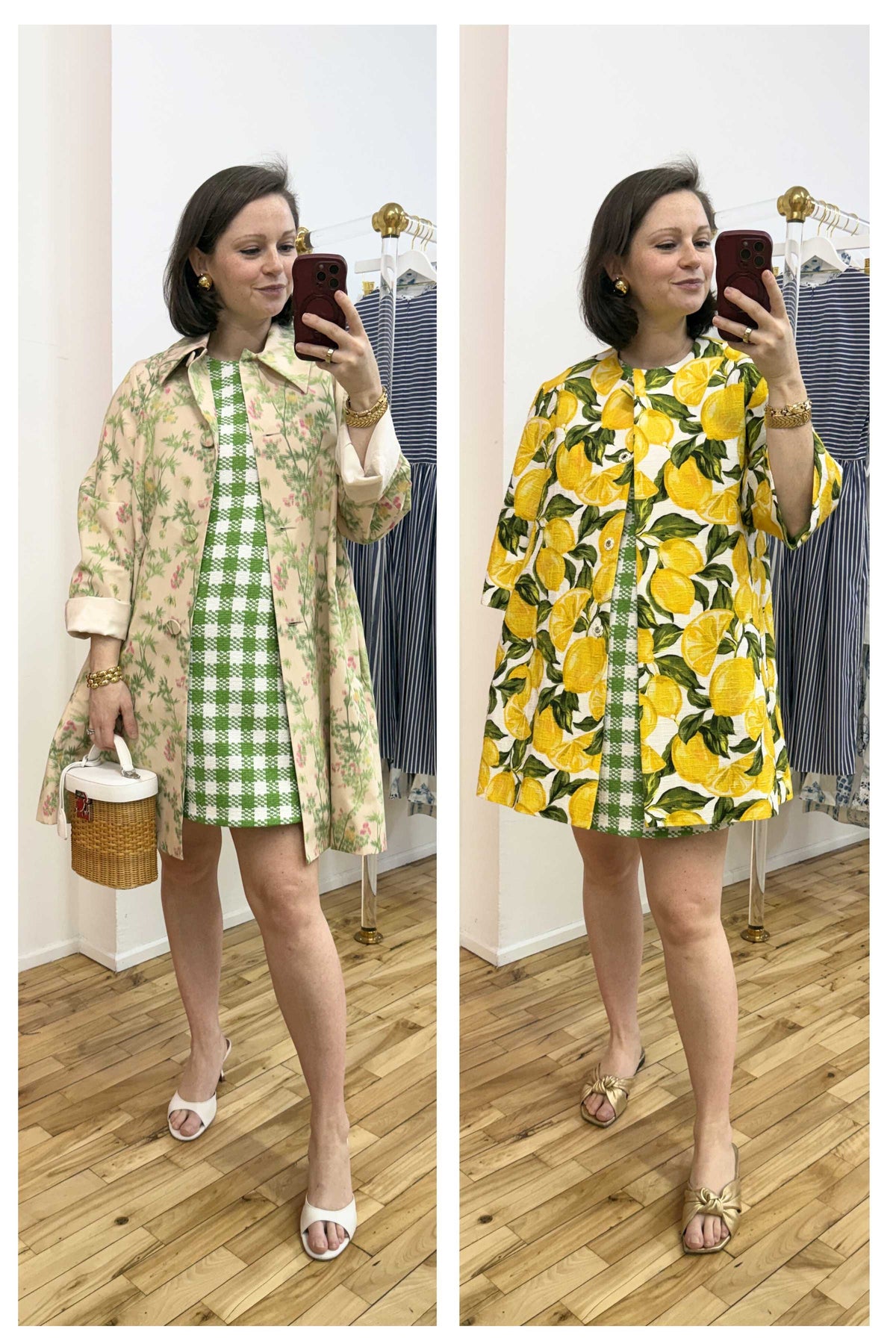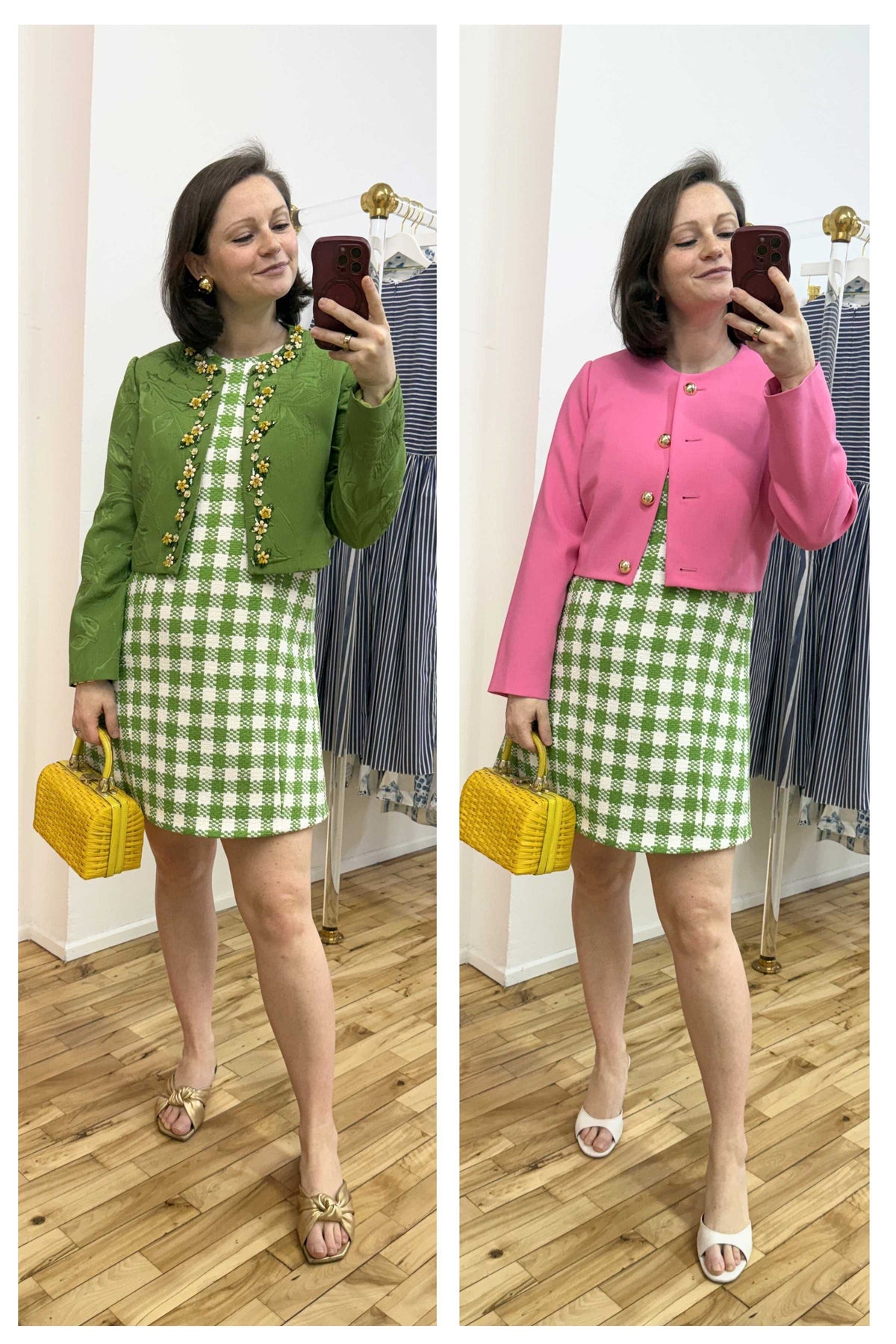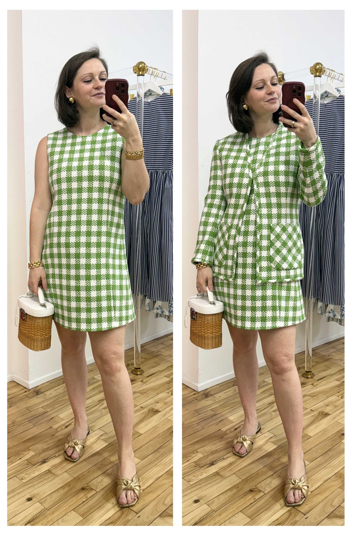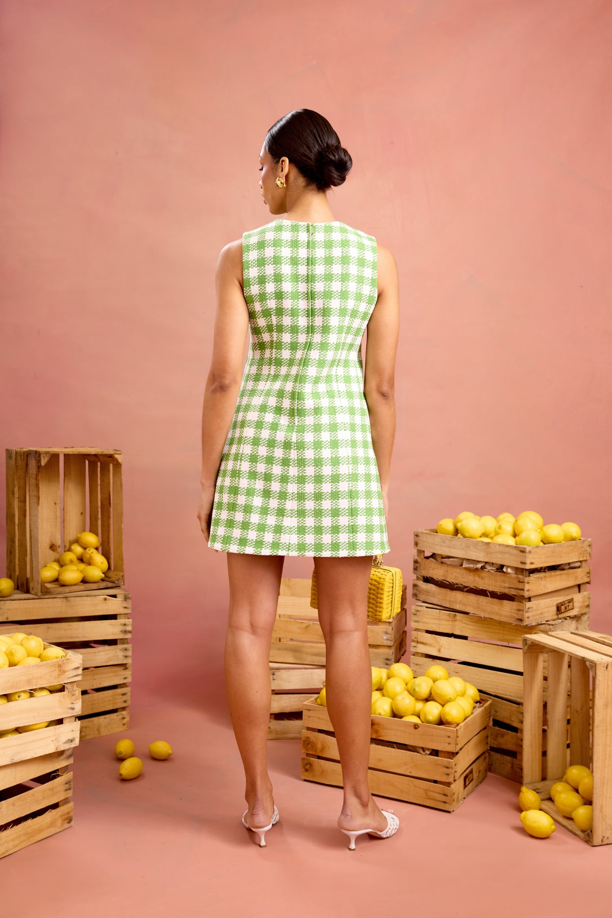 Back by popular demand, the Drew Dress offers a refined take on the classic shift. A more pronounced A-line silhouette is shaped with darts running from hem to apex, creating a flattering, softly structured fit. The Italian gingham tweed keeps things breathable while holding its form. Lined in stretch silk, she’s equal parts ease and precision.