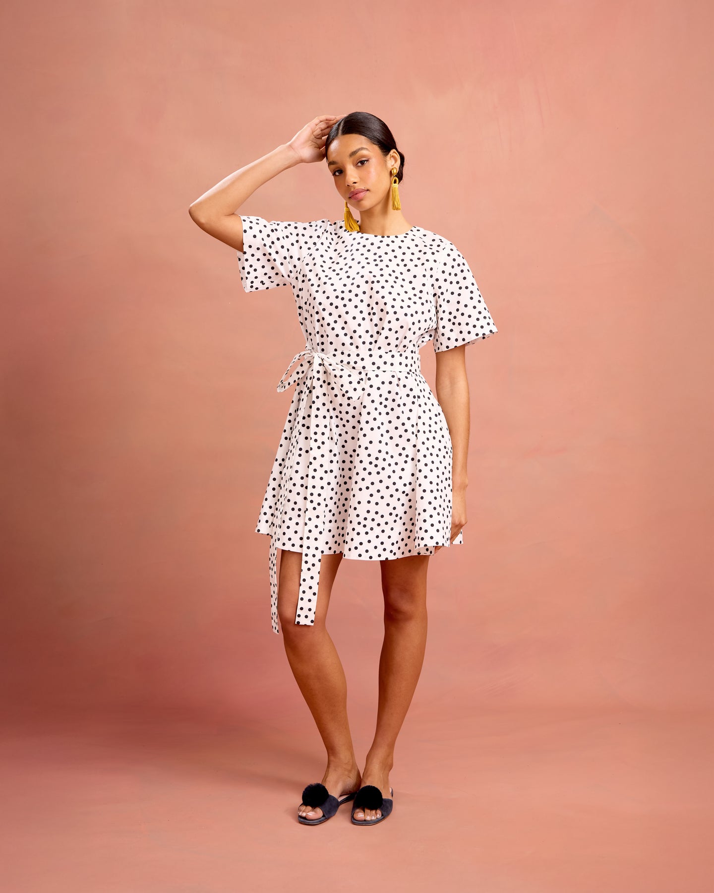 Inspired by our signature Audrey Coat, the Lucy Dress translates that structure into an effortless summer silhouette. Cut from paper-touch cotton poplin with a hint of stretch, she’s crisp, breathable, and endlessly wearable. Princess seams, side paneling, and an inverted back pleat create a flattering shape. Wear her with or without the waist tie—she's meant to move with you.