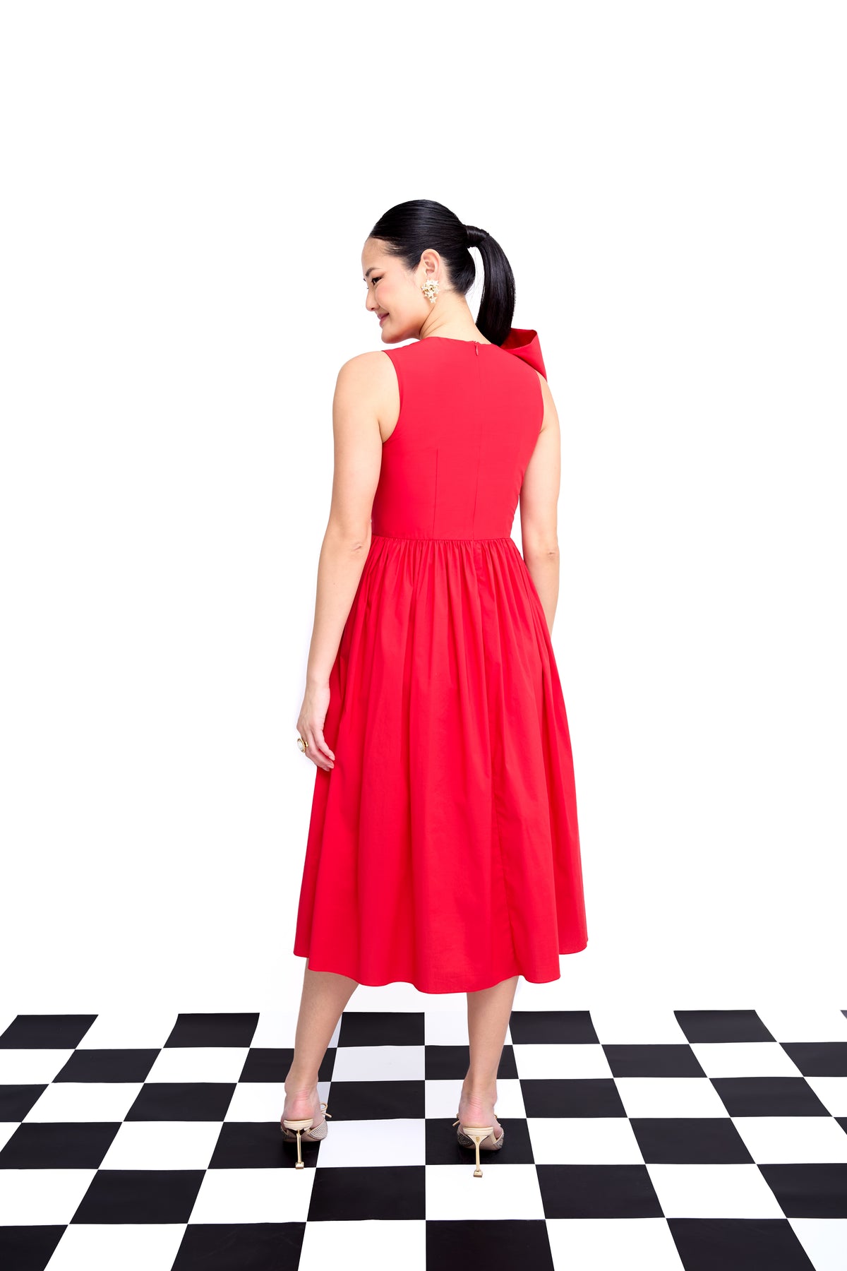 The Red Gracie Dress is a holiday essential, crafted in an easy, lightweight cotton-nylon taffeta and finished with MAE’s signature tied bow. With a flattering silhouette and playful, gift-like charm, she’s the perfect piece for festive soirées and celebratory evenings.