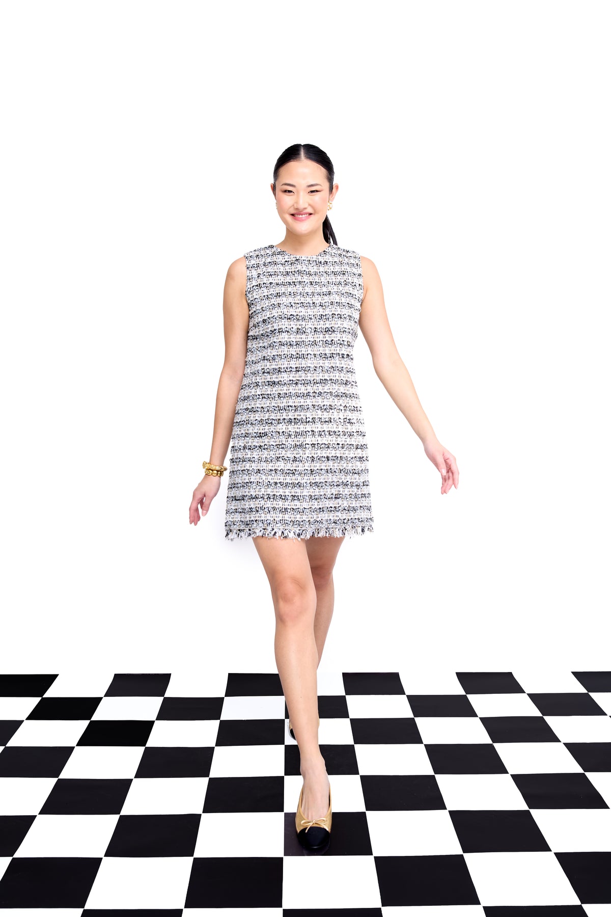 The Laurel in Sparkle Tweed is a holiday-ready essential. Crafted from a French deadstock tweed with a hint of shimmer, she’s detailed with ivory tulle and self-fringe, balancing craftsmanship with personality. From festive evenings to polished workdays, she delivers understated sparkle at every turn. Pair her back to a crisp button down for a work-to-holiday-party easy look.