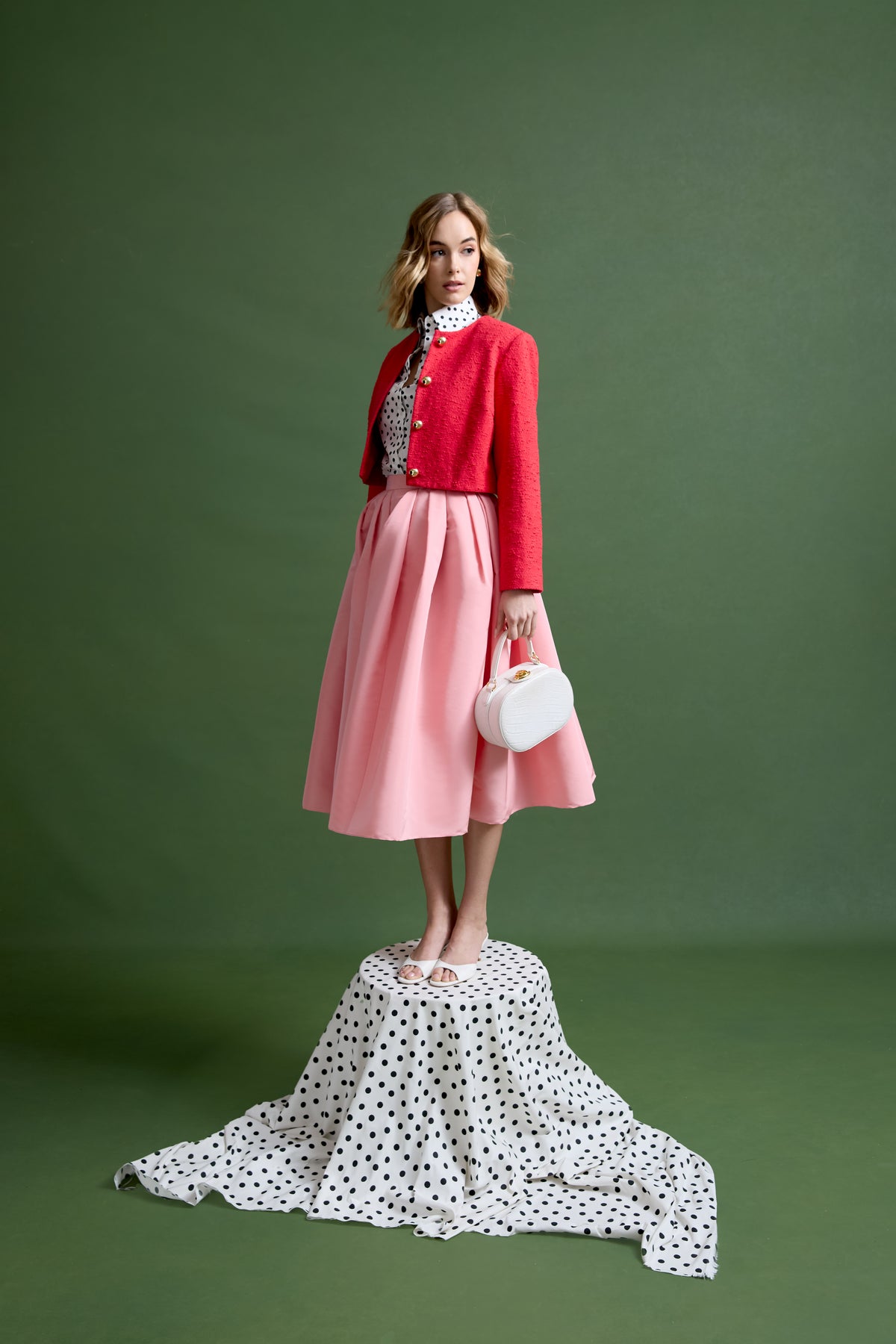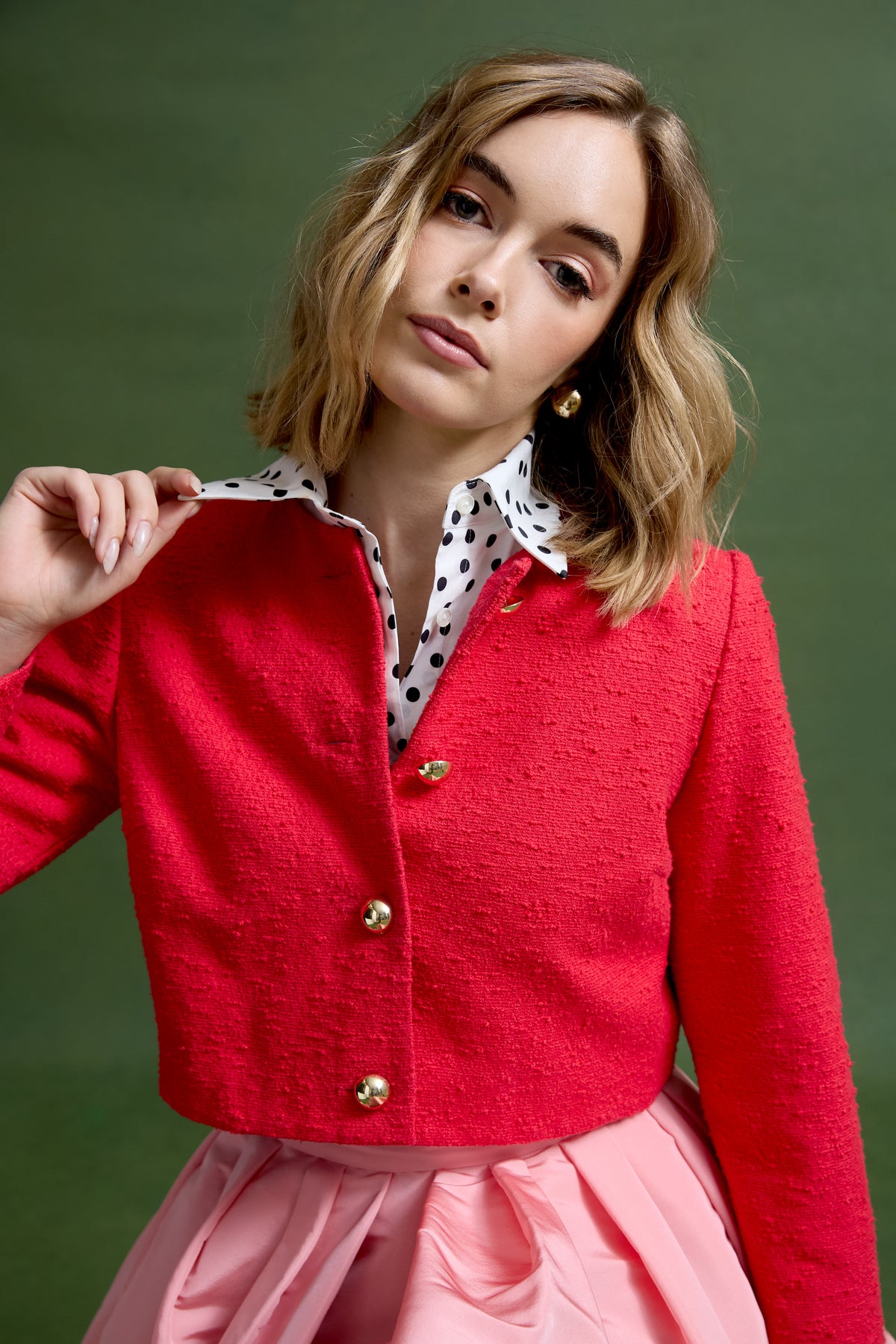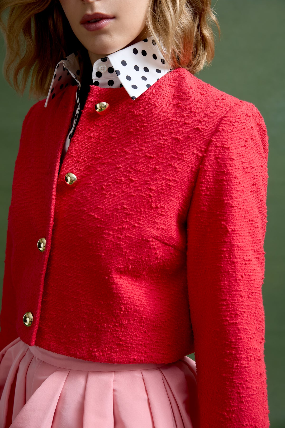 The Cecilia Jacket is crafted from limited-edition dead stock cotton-linen bouclé—only enough fabric for approximately fifteen pieces. A boxy, cropped silhouette is balanced by stretch silk lining and finished with signature MAE gold dome buttons. Equally at home over dresses or paired with tailored separates, she’s the kind of piece that quietly does it all.